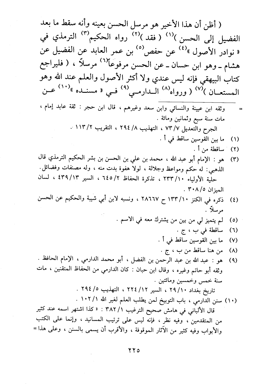 (أظن أن هذا الأخير هو مرسل الحسن بعينه وأنه سقط ما بعد الفضيل إلى الحسن) (فقد) رواه الحكيم الترمذي في "نوادر الأصول" عن حفص بن عمر العابد عن الفضيل عن هشام -وهو ابن حسان- عن الحسن مرفوعاً مرسلاً، (فليراجع كتاب البيهقي فإنه ليس عندي ولا أكثر الأصول والعلم عند الله وهو المستعان) (ورواه الدارمي في "مسنده" عن
