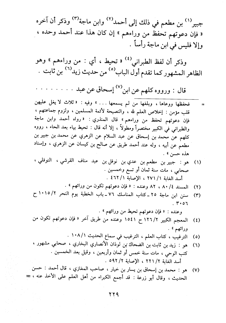 جبير بن مطعم في ذلك إلى أحمد وابن ماجة وذكر أن آخره "فإن دعوتهم تحفظ من وراءهم" إن كان هذا عند أحمد وحده، وإلا فليس في ابن ماجة رأساً.