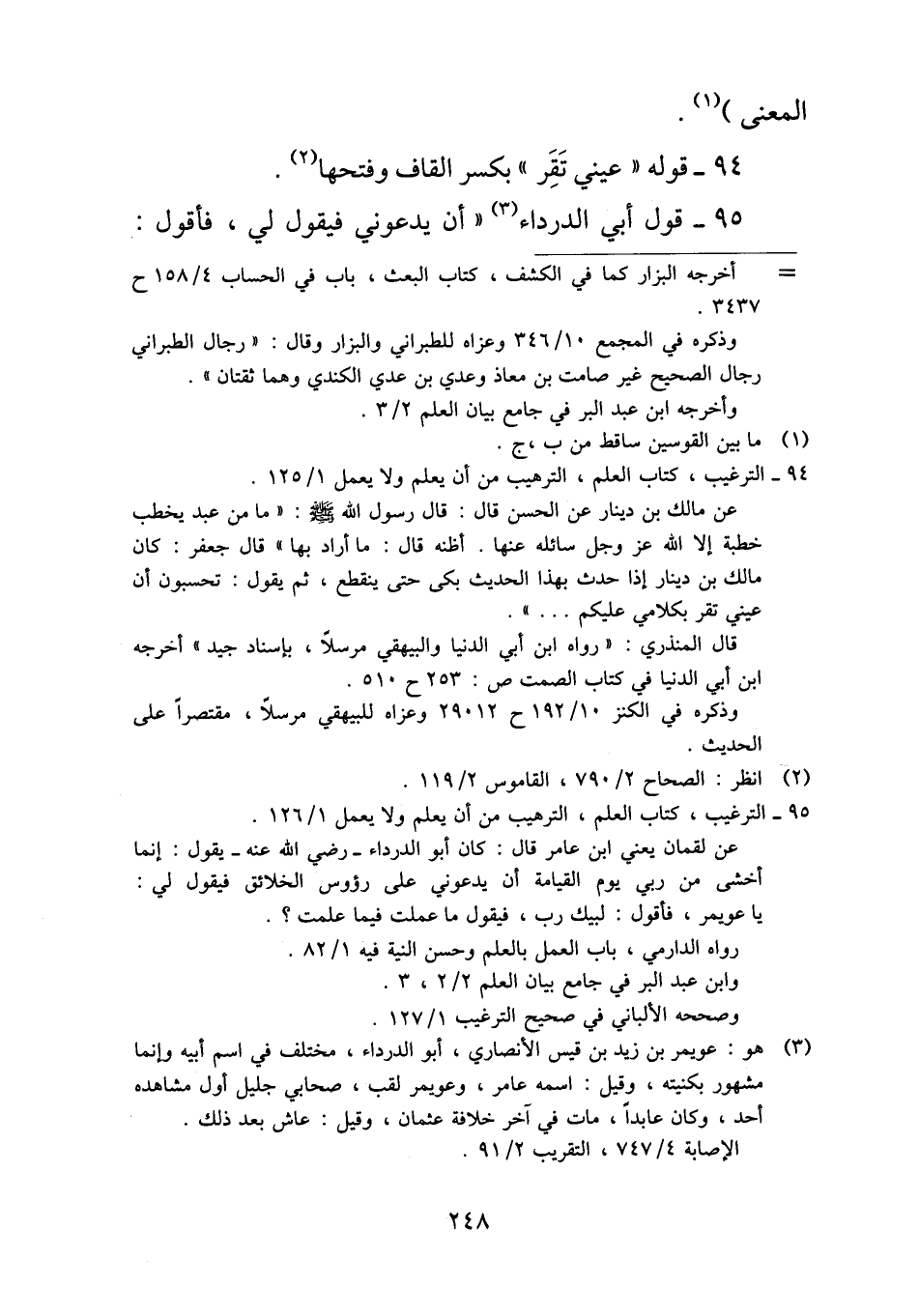 ٩٥ - قول أبي الدرداء "أن يدعوني فيقول لي، فأقول: