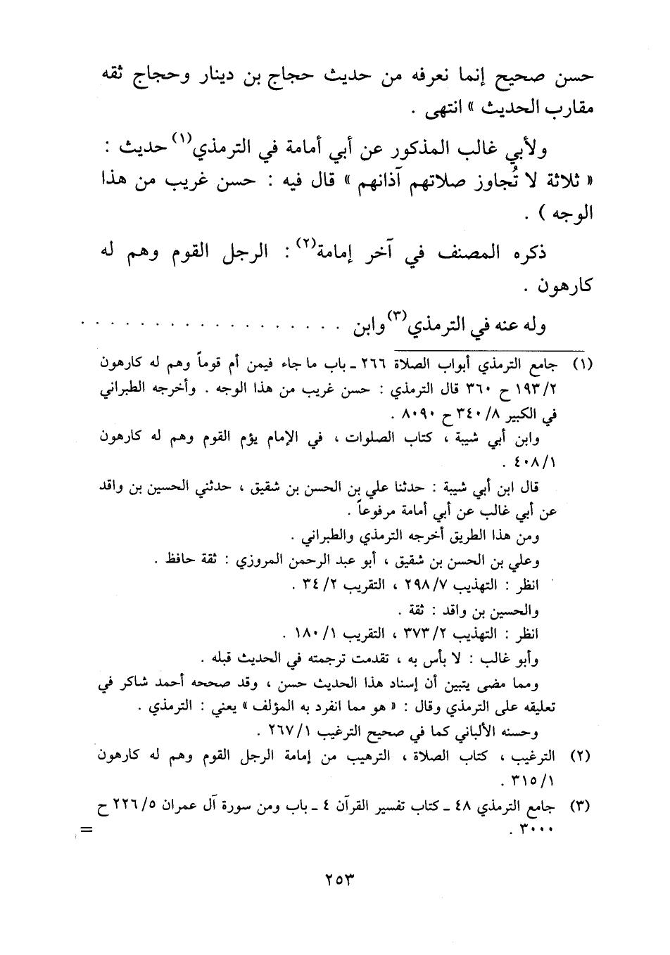 ولأبي غالب المذكور عن أبي أمامة في الترمذي حديث: "ثلاثة لا تُجاوز صلاتهم آذانهم" قال فيه: حسن غريب من هذا الوجه).