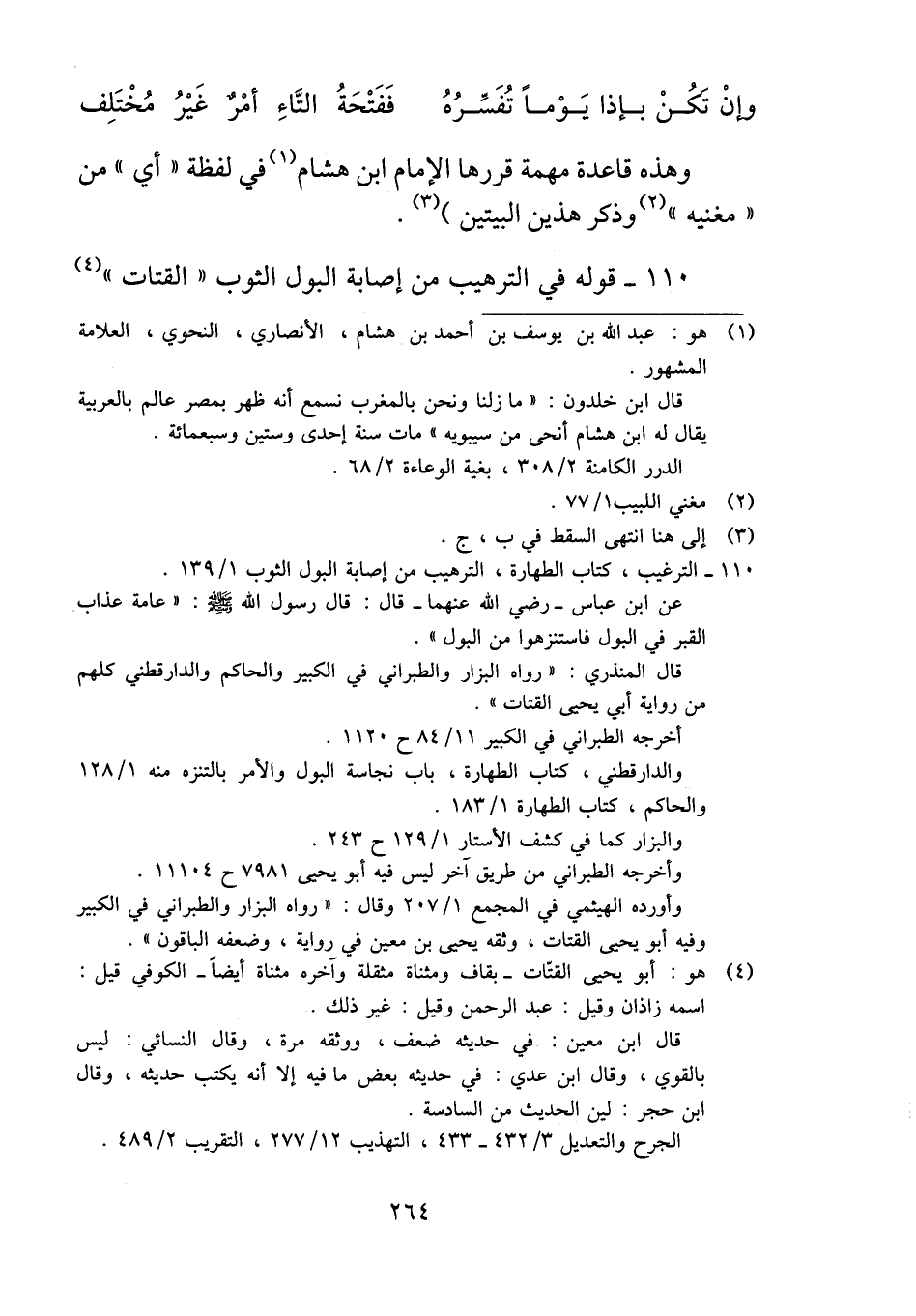 ١١٠ - قوله في الترهيب من إصابة البول الثوب "القتات"