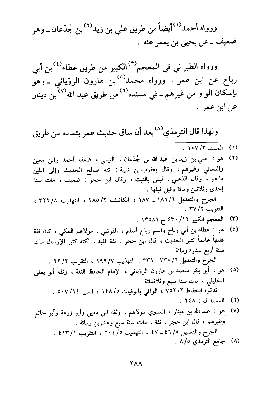 ورواه الطبراني في المعجم الكبير من طريق عطاء بن أبي رباح عن ابن عمر. ورواه محمد بن هارون الروْياني -وهو بإسكان الواو من غيرهم- في مسنده من طريق عبد الله بن دينار عن ابن عمر.