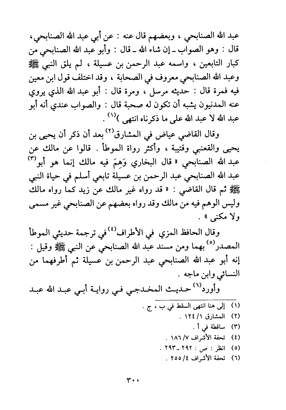 وقال الحافظ المزي في الأطراف في ترجمة حديثي الموطأ المصدر بهما ومن مسند عبد الله الصنابحي عن النبي - صلى الله عليه وسلم - وقيل: إنه أبو عبد الله الصنابحي عبد الرحمن بن عسيلة ثم أطرفهما من النسائي وابن ماجه.