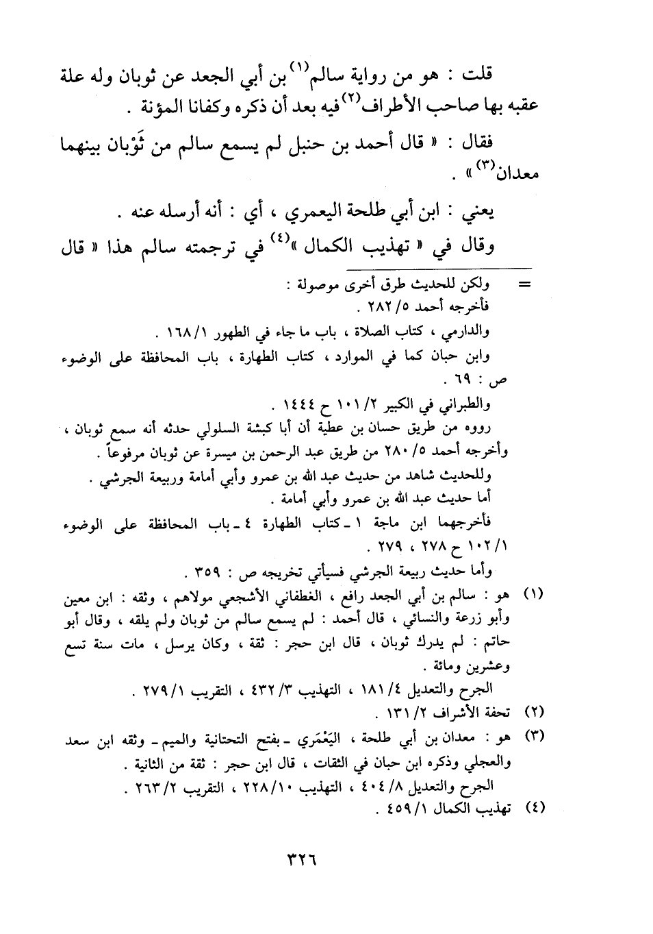فقال: "قال أحمد بن حنبل لم يسمع سالم من ثَوْبان بينهما معدان".