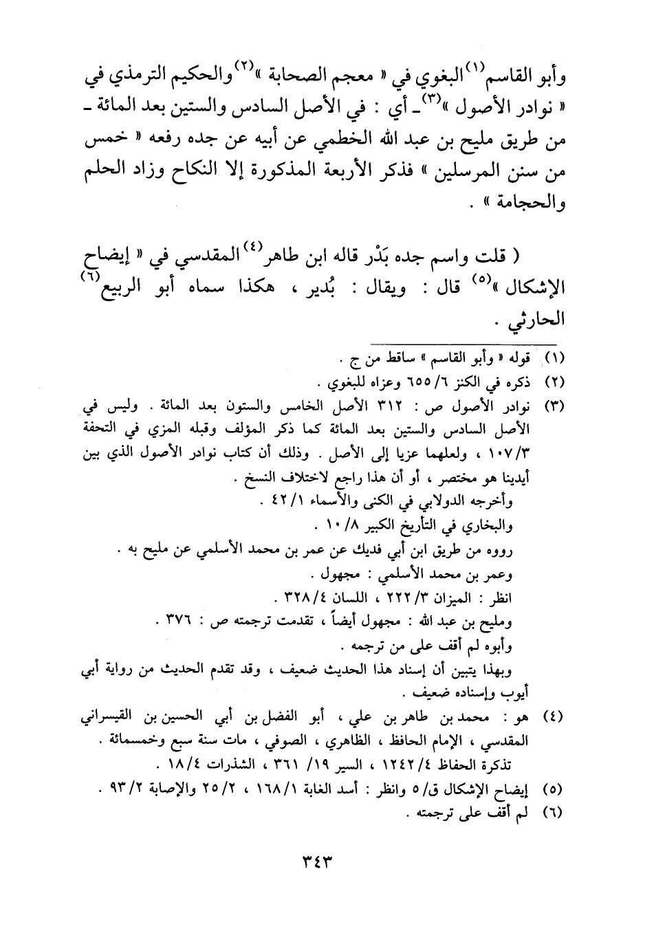 (قلت واسم جده بَدْر قاله ابن طاهر المقدسي في "إيضاح الإشكال" قال: ويقال: بُدير، هكذا سماه أبو الربيع الحارثي.