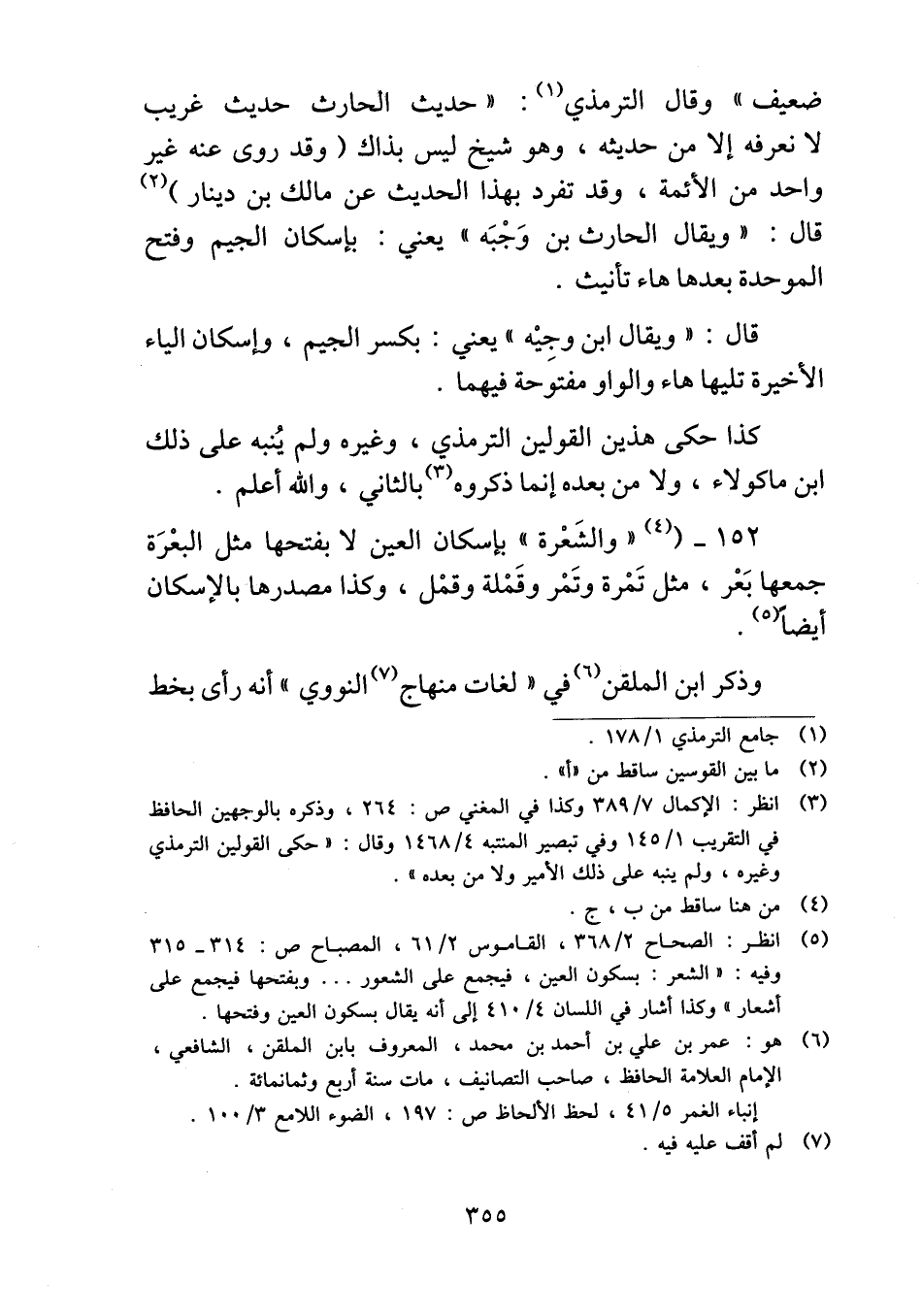 ١٥٢ - ("والشَعْرة" بإسكان العين لا بفتحها مثل البعْرَة جمعها بَعْر، مثل تَمْرة وتَمْر وقَمْلة وقمْل، وكذا مصدرها بالإسكان أيضاً.