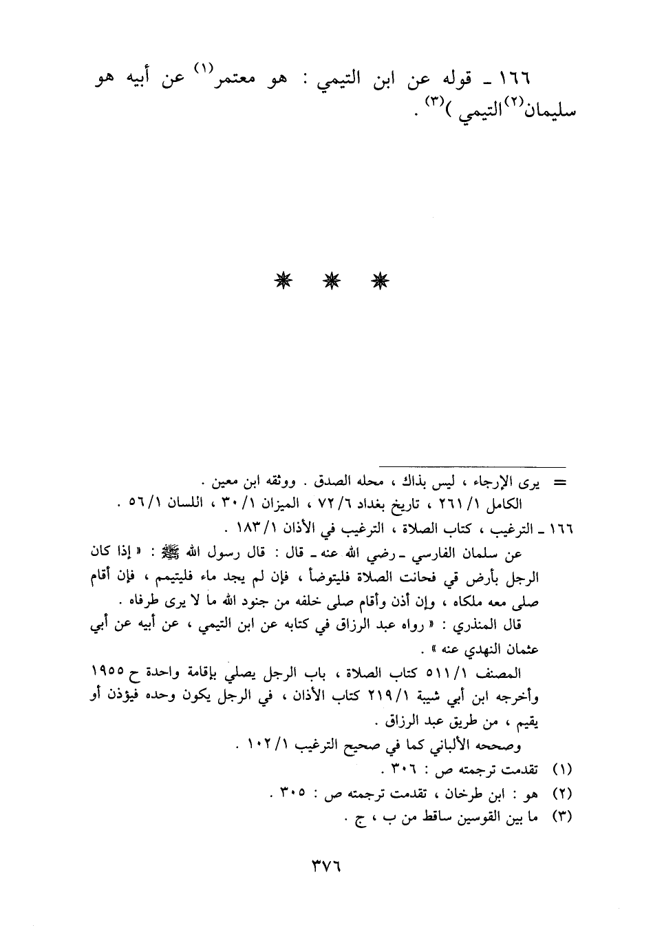 ١٦٦ - قوله عن ابن التيمى: هو معتمر عن أبيه هو سليمان التيمي).