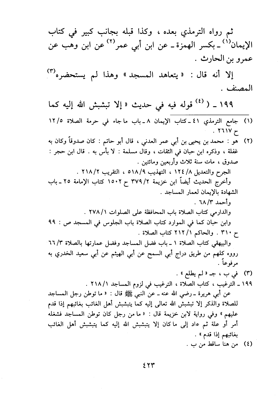 ١٩٩ - (قوله فيه في حديث "إلا تبشبش الله إليه كما