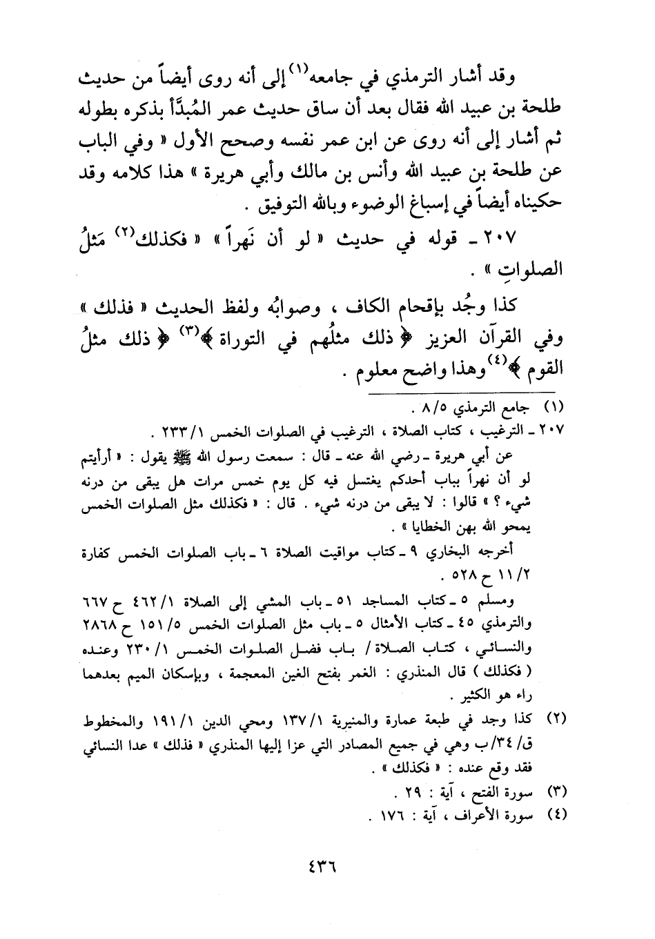 ٢٠٧ - قوله في حديث "لو أن نَهراً" "فكذلك مَثلُ الصلواتِ".