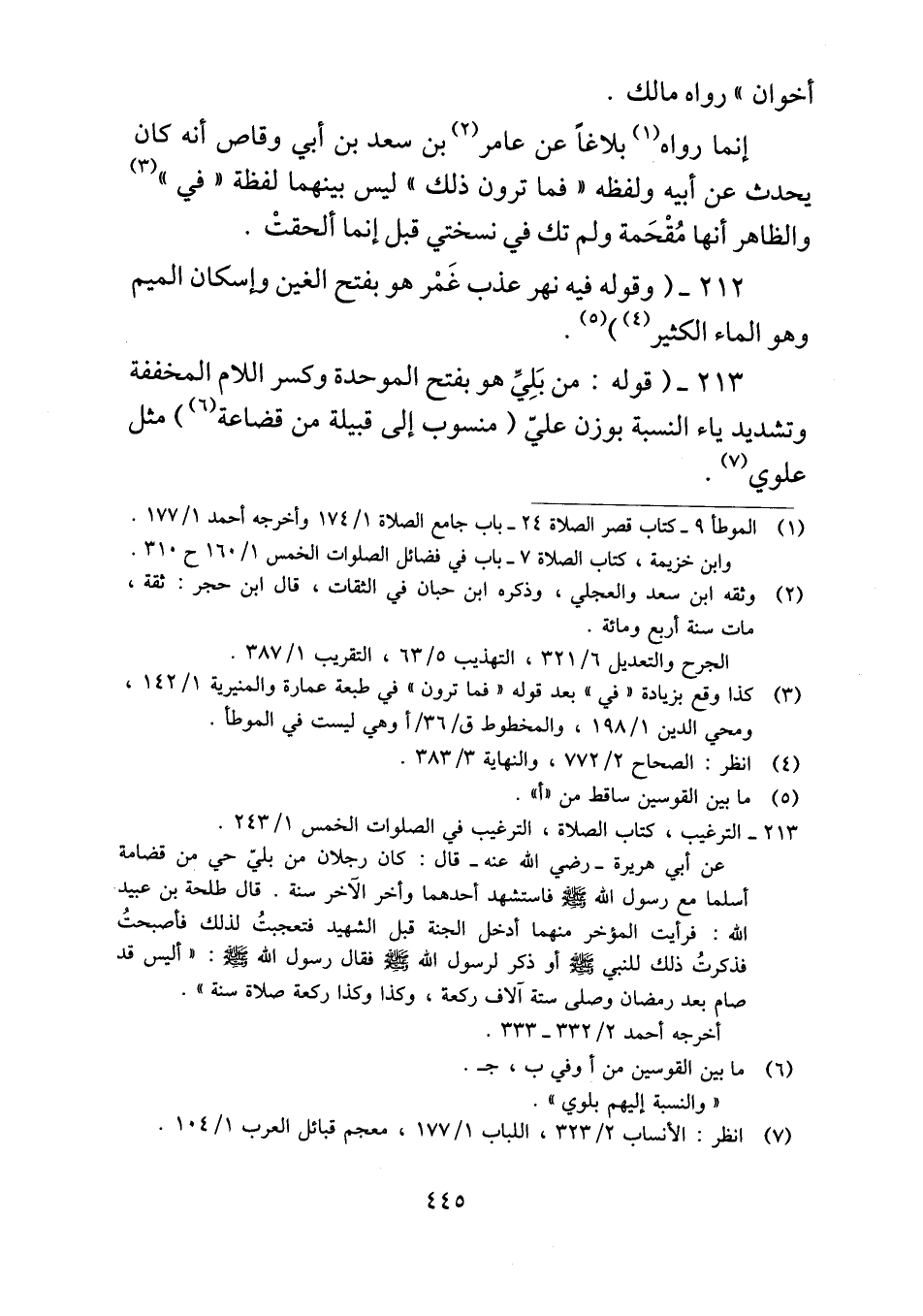 ٢١٣ - (قوله: من بَلِيِّ هو بفتح الموحدة وكسر اللام المخففة وتشديد ياء النسبة بوزن عليّ (منسوب إلى قبيلة من قضاعة) مثل علوي.