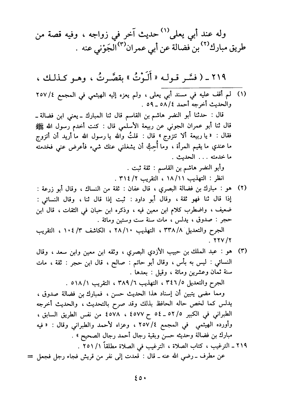 ٢١٩ - (فسَّر قوله "أَلَوْتُ" بقصَّرتُ، وهو كذلك،