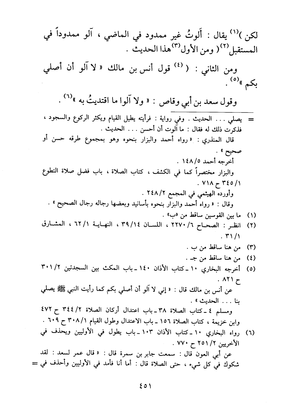 ومن الثاني: (قول أنس بن مالك "لا آلو أن أصلي بكم".