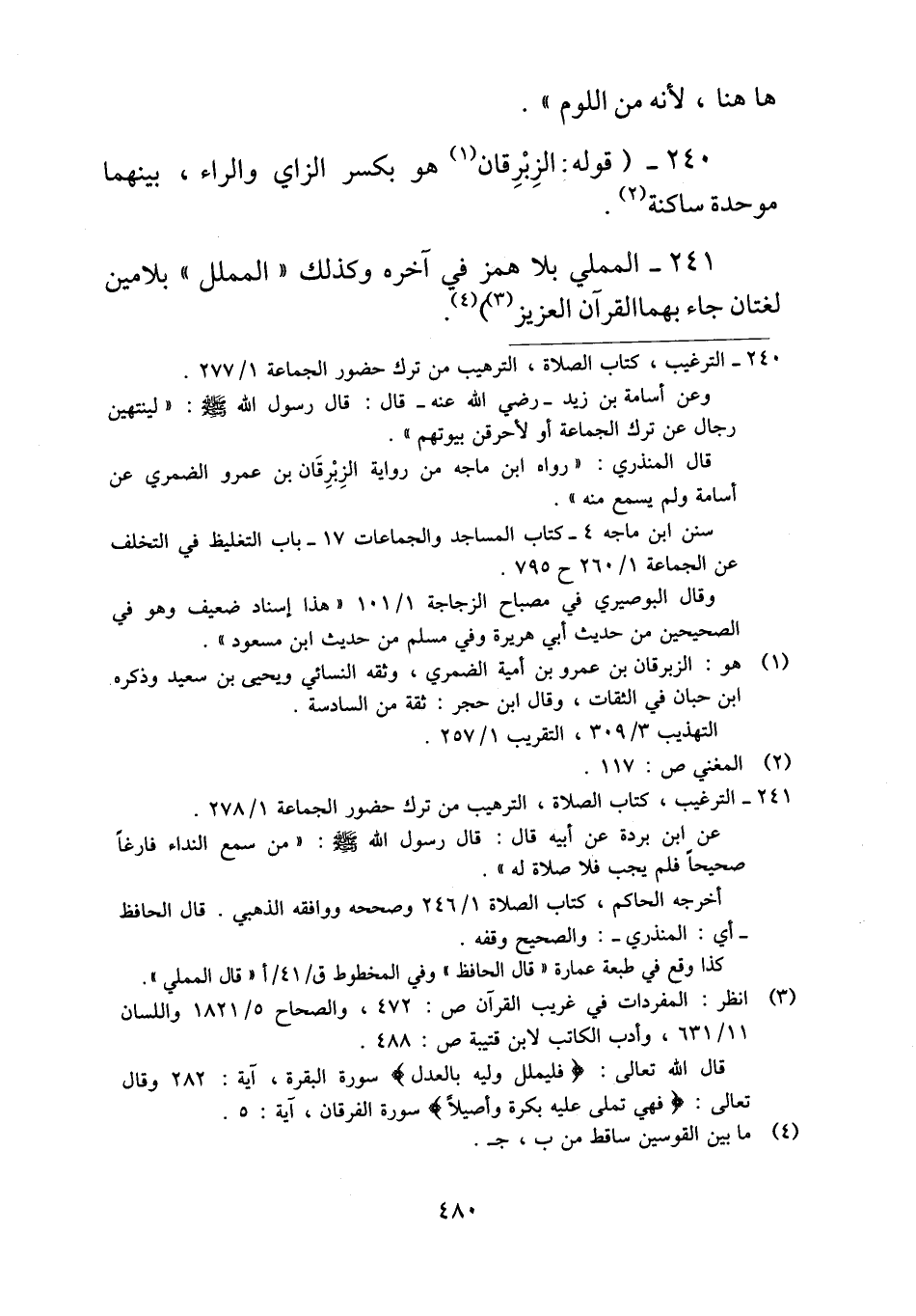 ٢٤٠ - (قوله: الزِبْرِقان هو بكسر الزاي والراء، بينهما موحدة ساكنة.