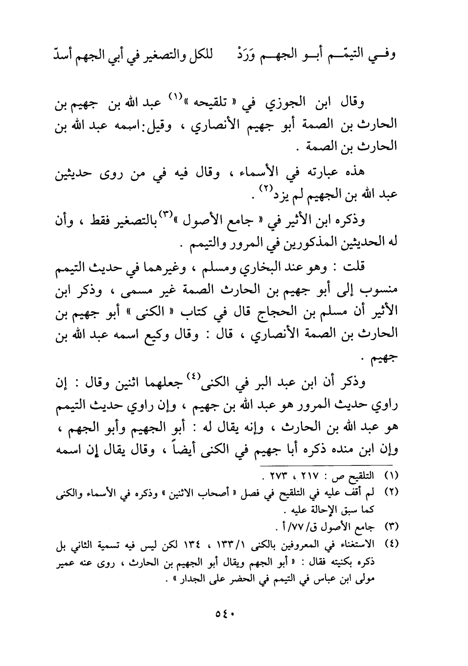 وذكر أن ابن عبد البر في الكنى جعلهما اثنين وقال: إن راوي حديث المرور هو عبد الله بن جهيم، وإن راوي حديث التيمم هو عبد الله بن الحارث، وإنه يقال له: أبو الجهيم وأبو الجهم، وإن ابن منده ذكره أبا جهيم في الكنى أيضاً، وقال يقال إن اسمه