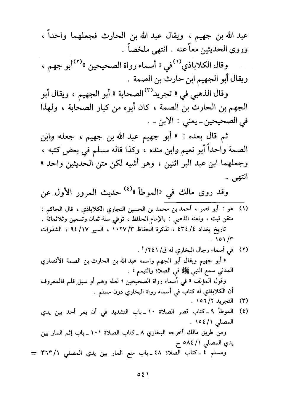 ثم قال بعده: "أبو جهيم عبد الله بن جهيم، جعله وابن الصمة واحداً أبو نعيم وابن منده، وكذا قاله مسلم في بعض كتبه، وجعلهما ابن عبد البر اثنين، وهو أشبه لكن متن الحديثين واحد" انتهى.