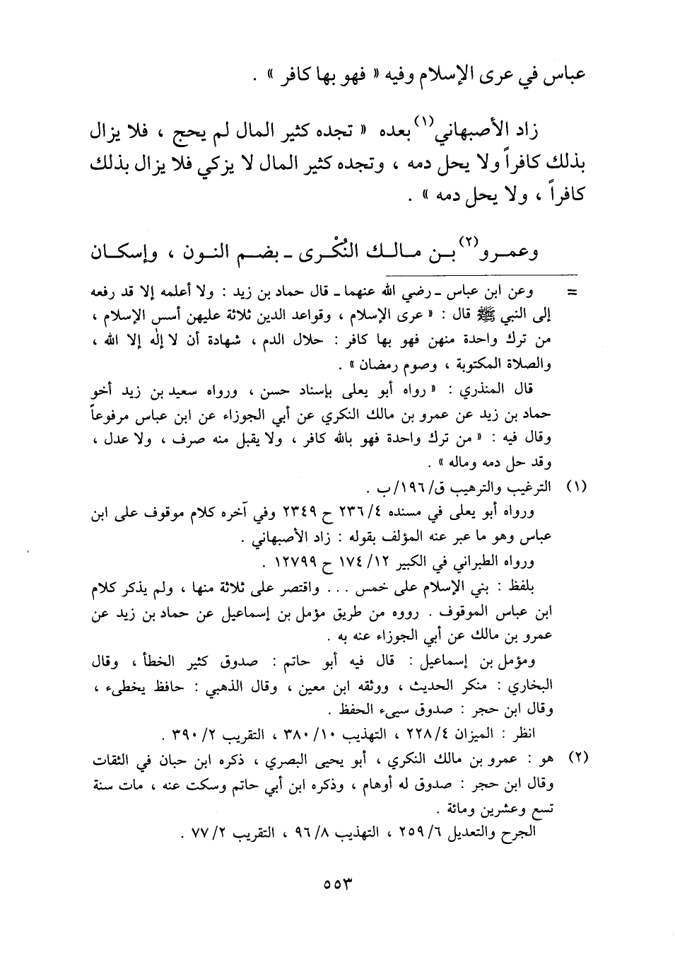 عباس في عرى الإسلام وفيه "فهو بها كافر".