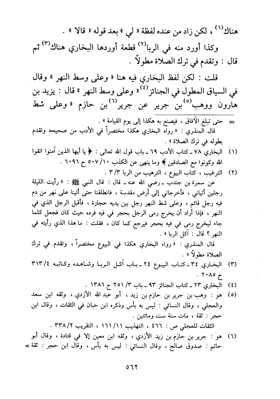 قلت: لكن لفظ البخاري فيه هنا "وعلى وسط النهر" وقال في السياق المطول في الجنائز "وعلى وسط النهر" قال: يزيد بن هارون ووهب بن جرير عن جرير بن حازم "وعلى شط