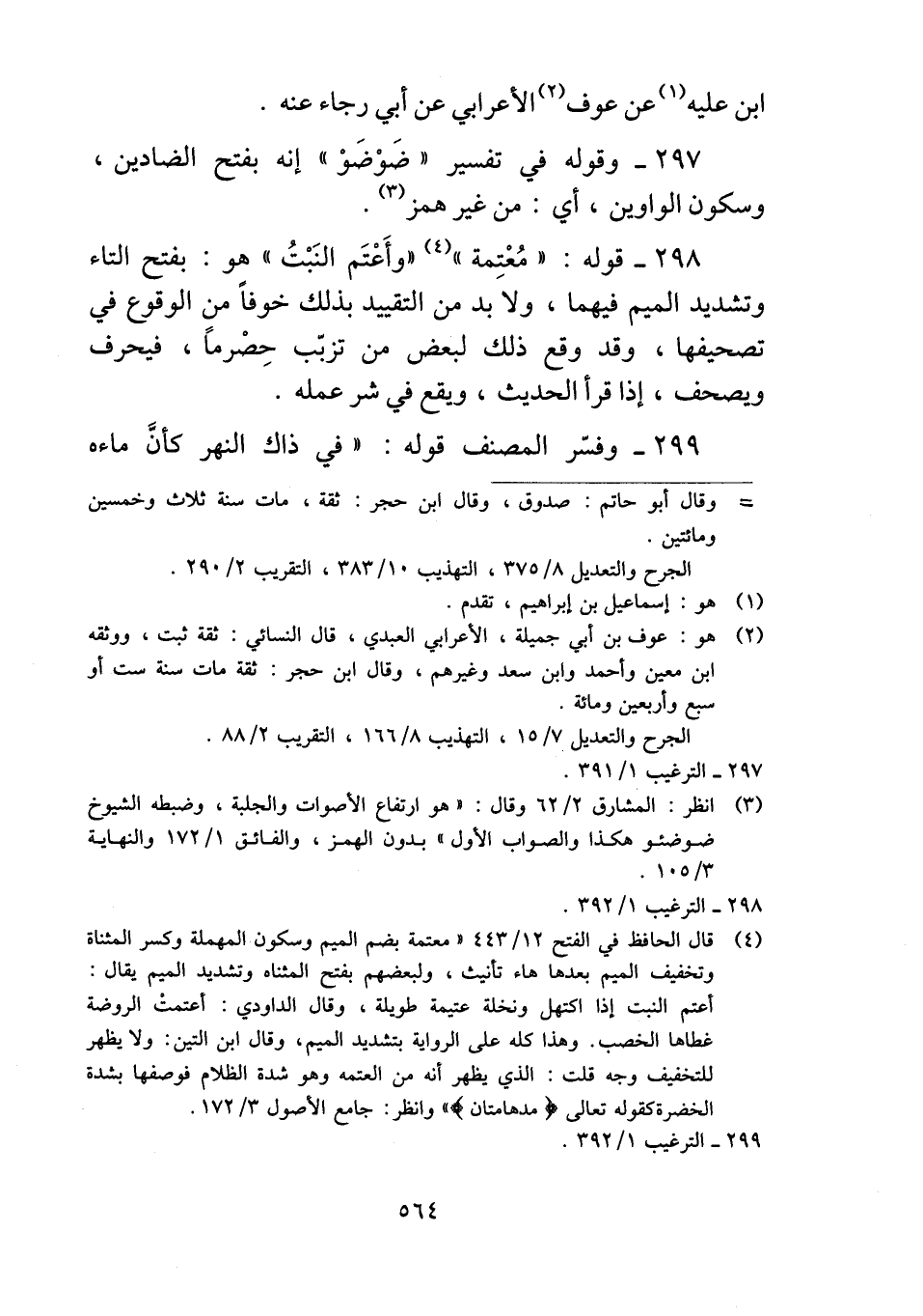 ٢٩٧ - وقوله في تفسير "ضَوْضَوْ" إنه بفتح الضادين، وسكون الواوين، أي: من غير همز.