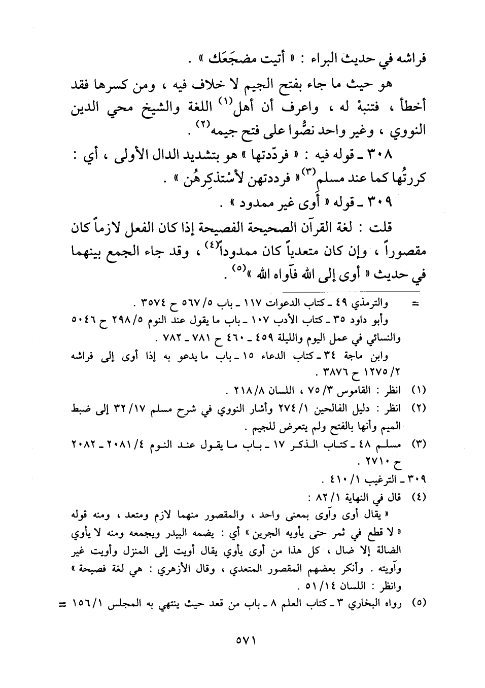 ٣٠٩ - قوله "أَوى غير ممدود".