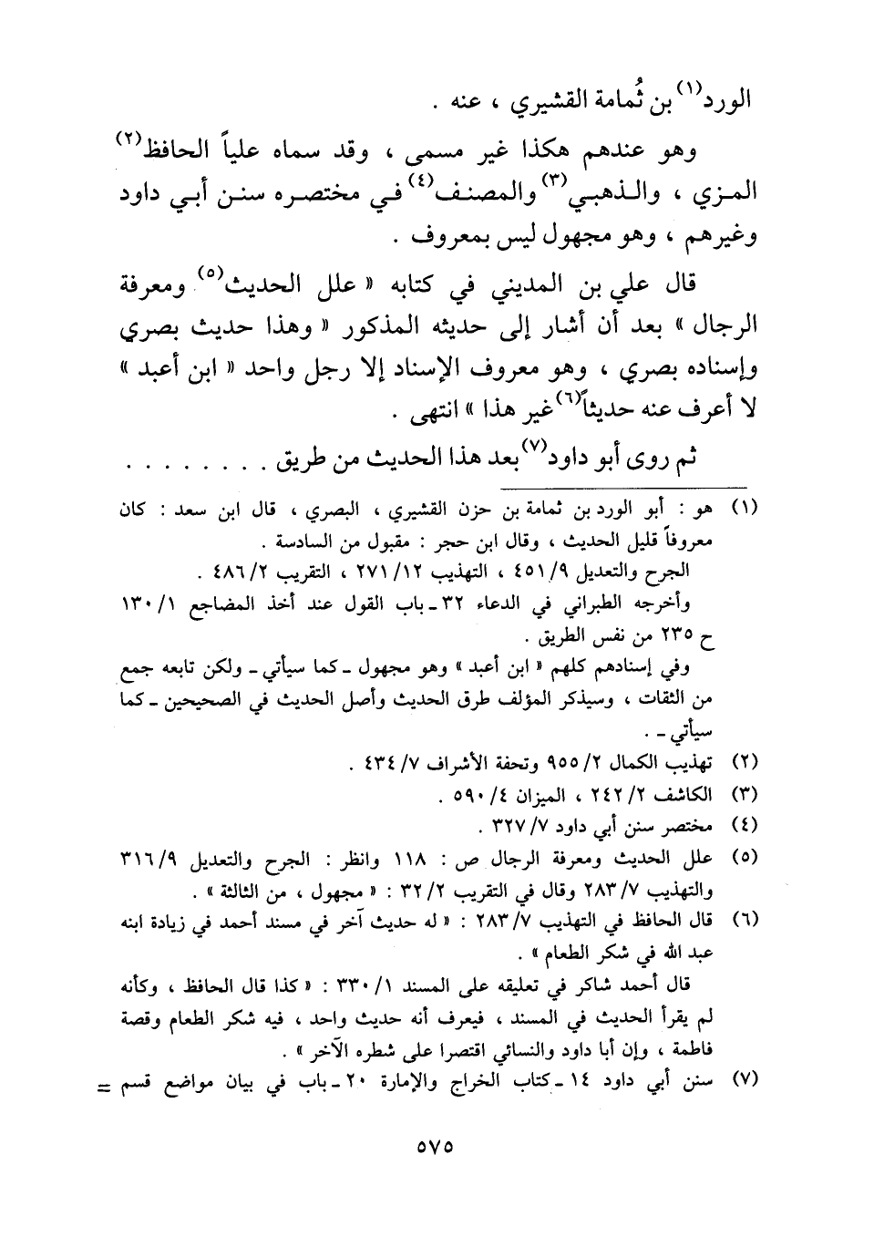 وهو عندهم هكذا غير مسمى، وقد سماه علياً الحافظ المزي، والذهبي والمصنف في مختصره سنن أبي داود وغيرهم، وهو مجهول ليس بمعروف.