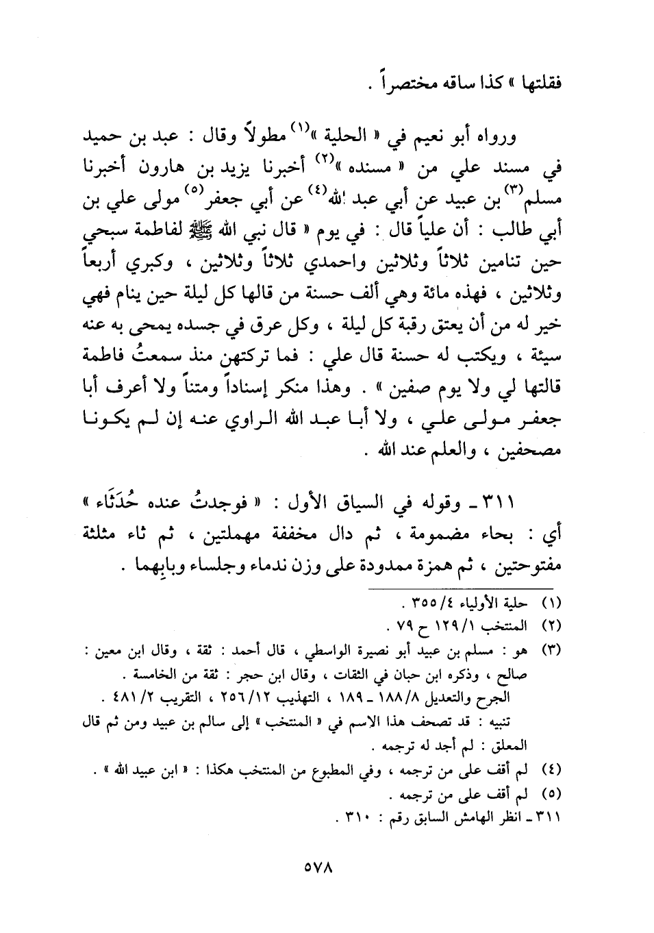 ٣١١ - وقوله في السياق الأول: "فوجدتُ عنده حُدَثَاء" أي: بحاء مضمومة، ثم دال مخففة مهملتين، ثم ثاء مثلثة مفتوحتين، ثم همزة ممدودة على وزن ندماء وجلساء وبابِهما.