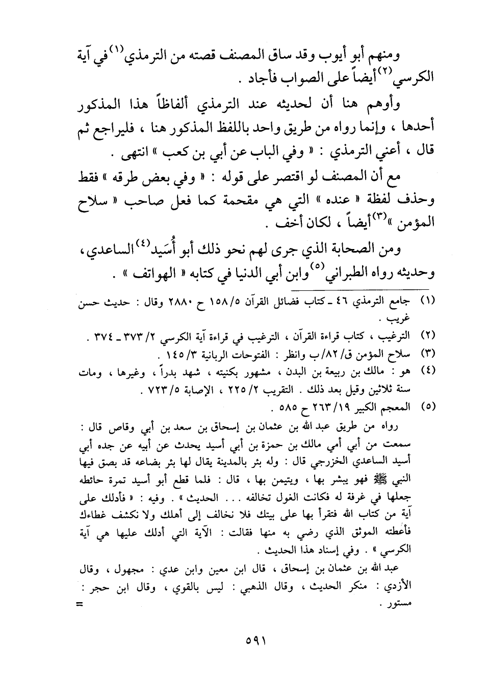 ومنهم أبو أيوب وقد ساق المصنف قصته من الترمذي في آية الكرسي أيضاً على الصواب فأجاد.