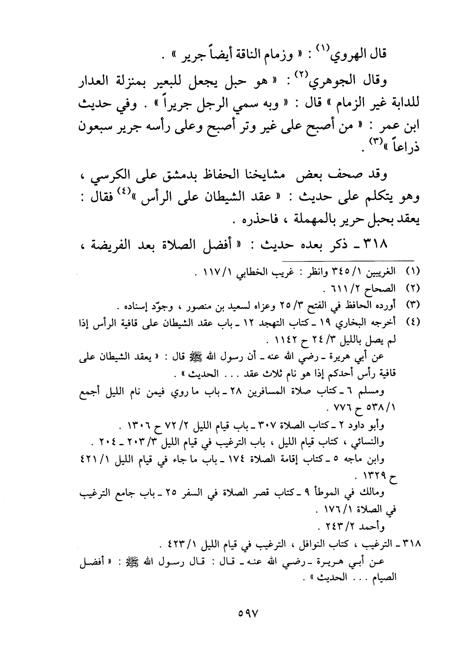 ٣١٨ - ذكر بعده حديث: "أفضل الصلاة بعد الفريضة،