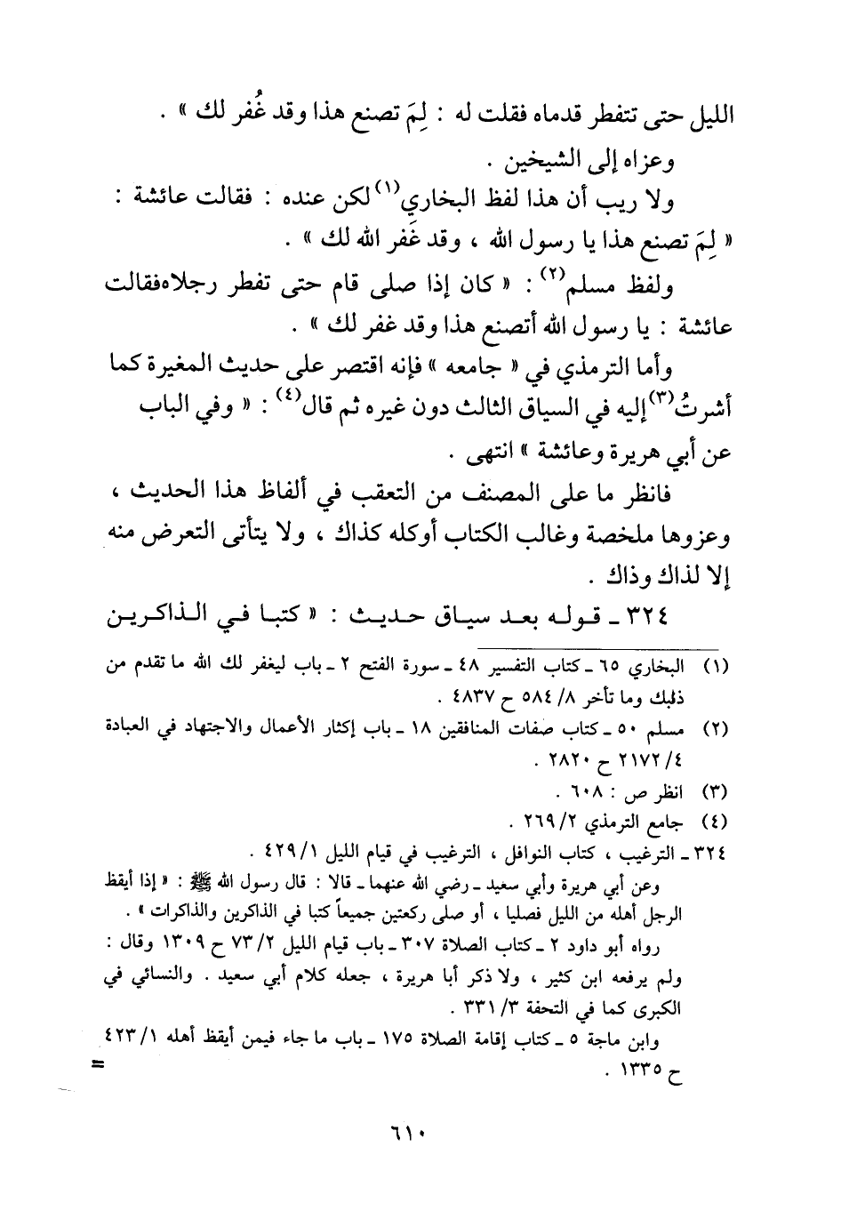 الليل حتى تتفطر قدماه فقلت له: لِمَ تصنع هذا وقد غُفر لك".