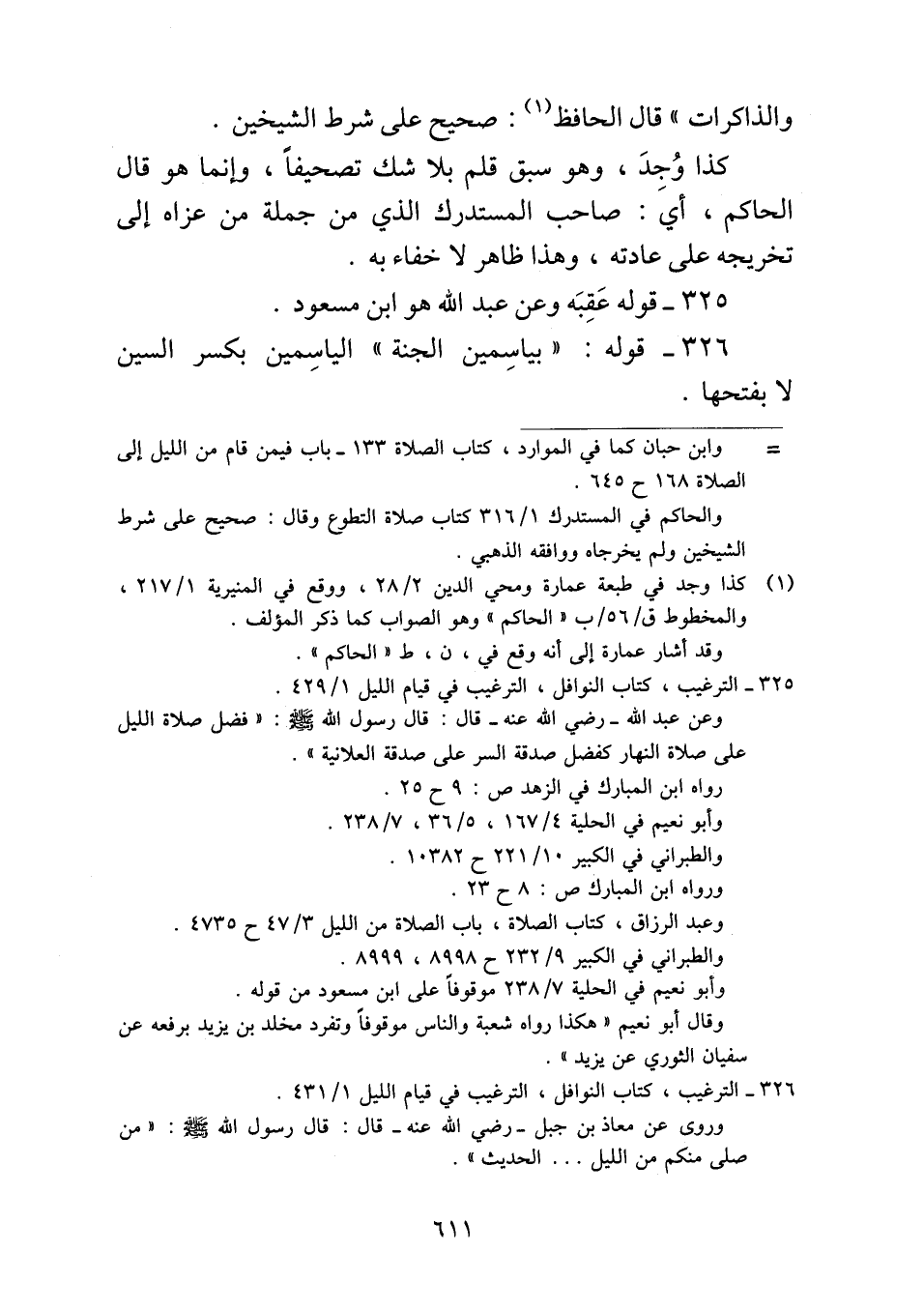 والذاكرات" قال الحافظ: صحيح على شرط الشيخين.