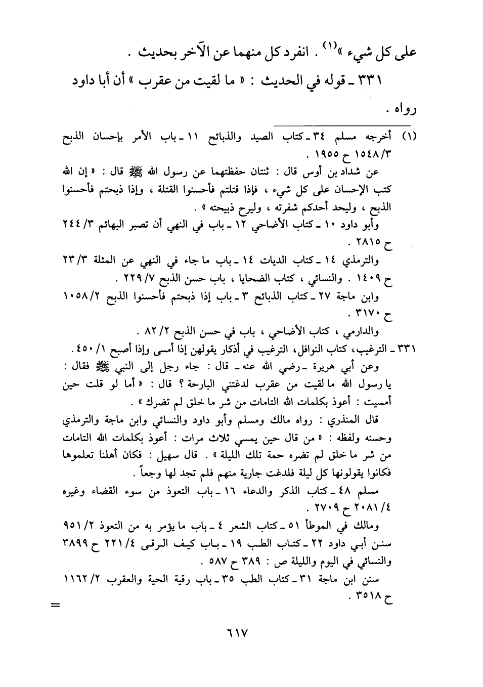 ٣٣١ - قوله في الحديث: "ما لقيت من عقرب" أن أبا داود رواه.