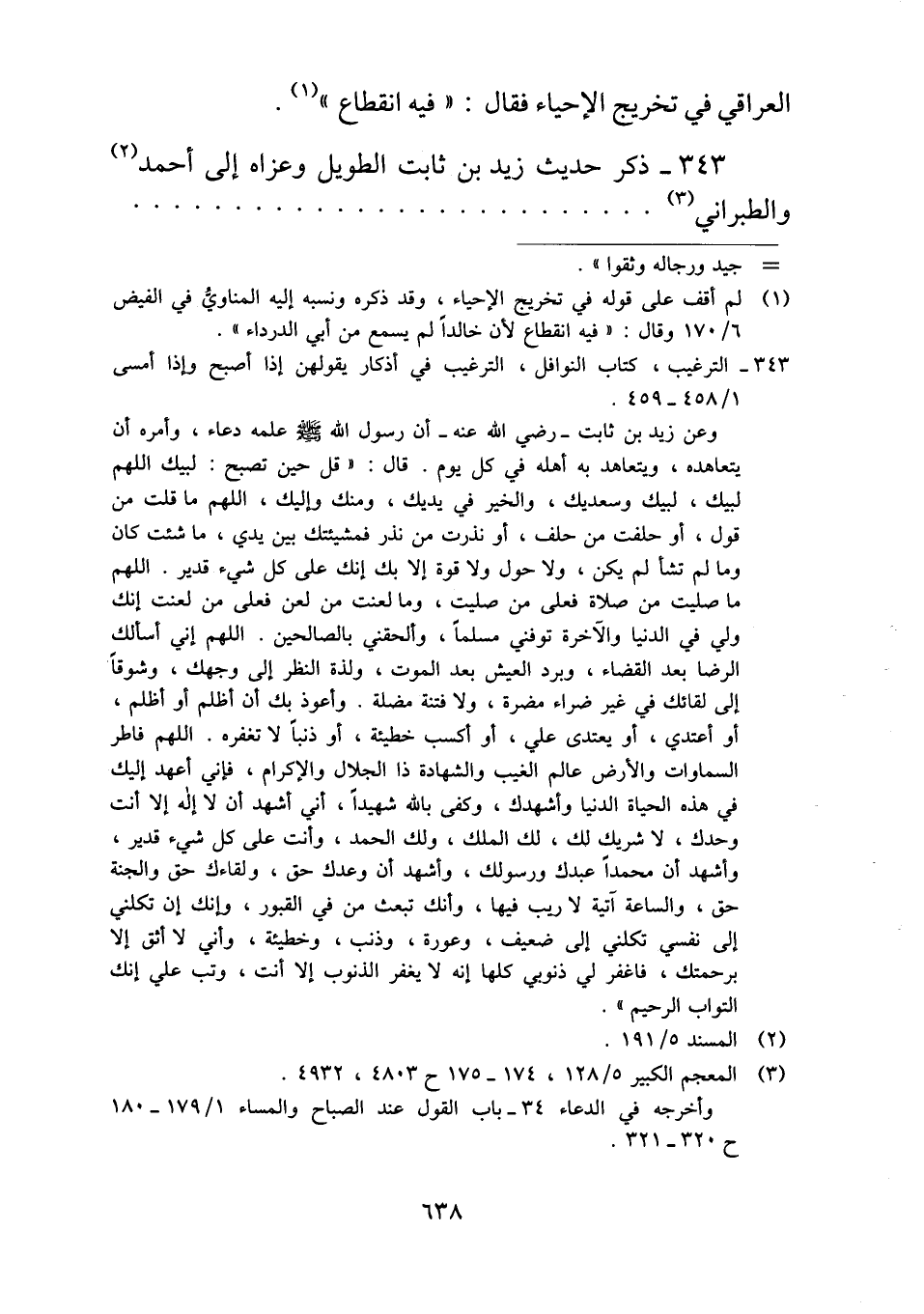 ٣٤٣ - ذكر حديث زيد بن ثابت الطويل وعزاه إلى أحمد والطبراني