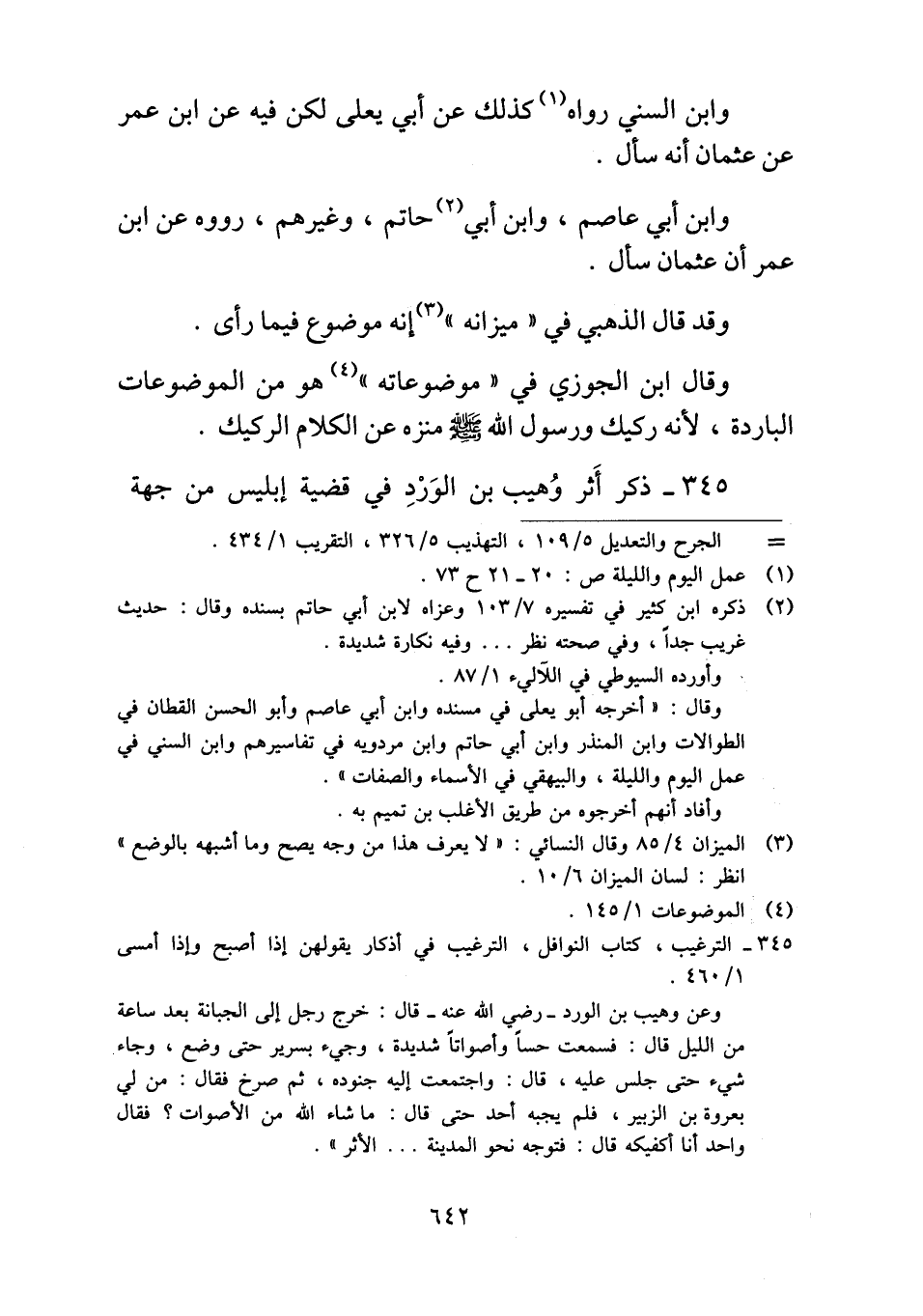 ٣٤٥ - ذكر أَثر وُهيب بن الوَرْدِ في قضية إبليس من جهة