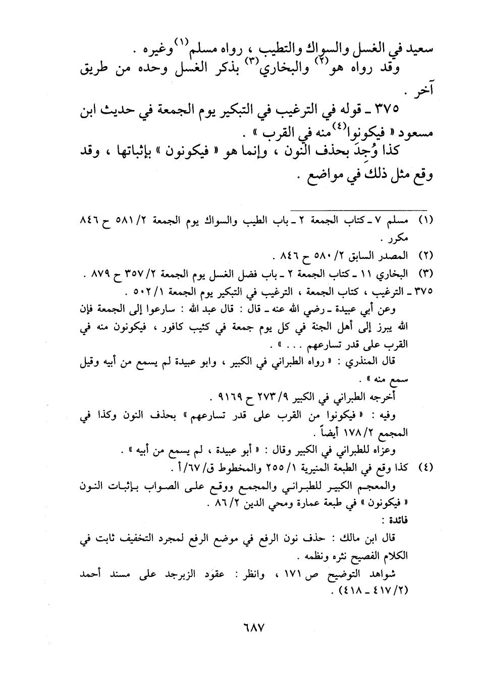 ٣٧٥ - قوله في الترغيب في التبكير يوم الجمعة في حديث ابن مسعود "فيكونوا منه في القرب".