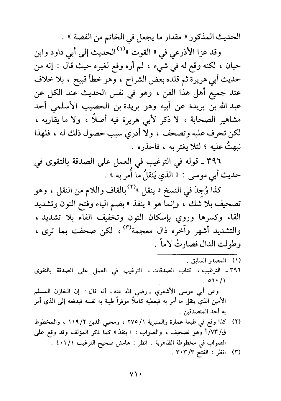 ٣٩٦ - قوله في الترغيب في العمل على الصدقة بالتقوى في حديث أبي موسى: "الذي يَنقلُ ما أُمر به".