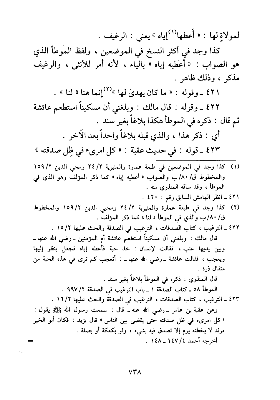 ٤٢٢ - وقوله: قال مالك: وبلغني أن مسكيناً استطعم عائشة ثم قال: ذكره في الموطأ هكذا بلاغاً بغير سند.