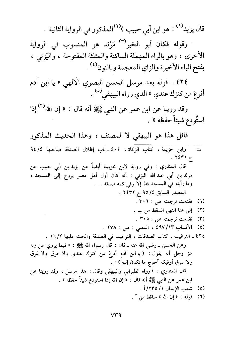 ٤٢٤ - قوله بعد مرسل الحسن البصري الآلهي "يا ابن آدم أفرغ من كنزك عندي" الذي رواه البيهقي.