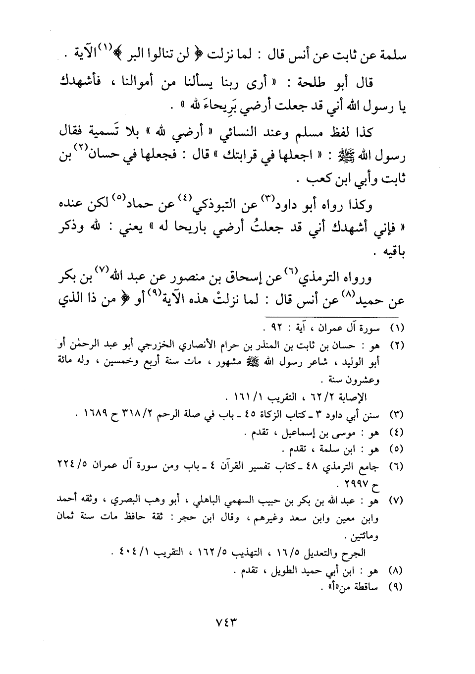 قال أبو طلحة: "أرى ربنا يسألنا من أموالنا، فأشهدك يا رسول الله أني قد جعلت أرضي بَرِيحاءَ لله".