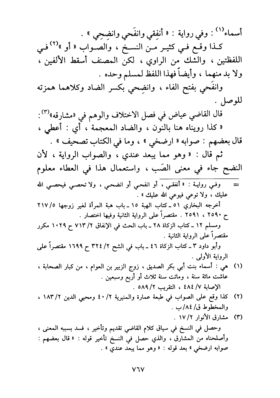 أسماء: وفي رواية: "أنفِقي وانفَحي وانضِحِي".