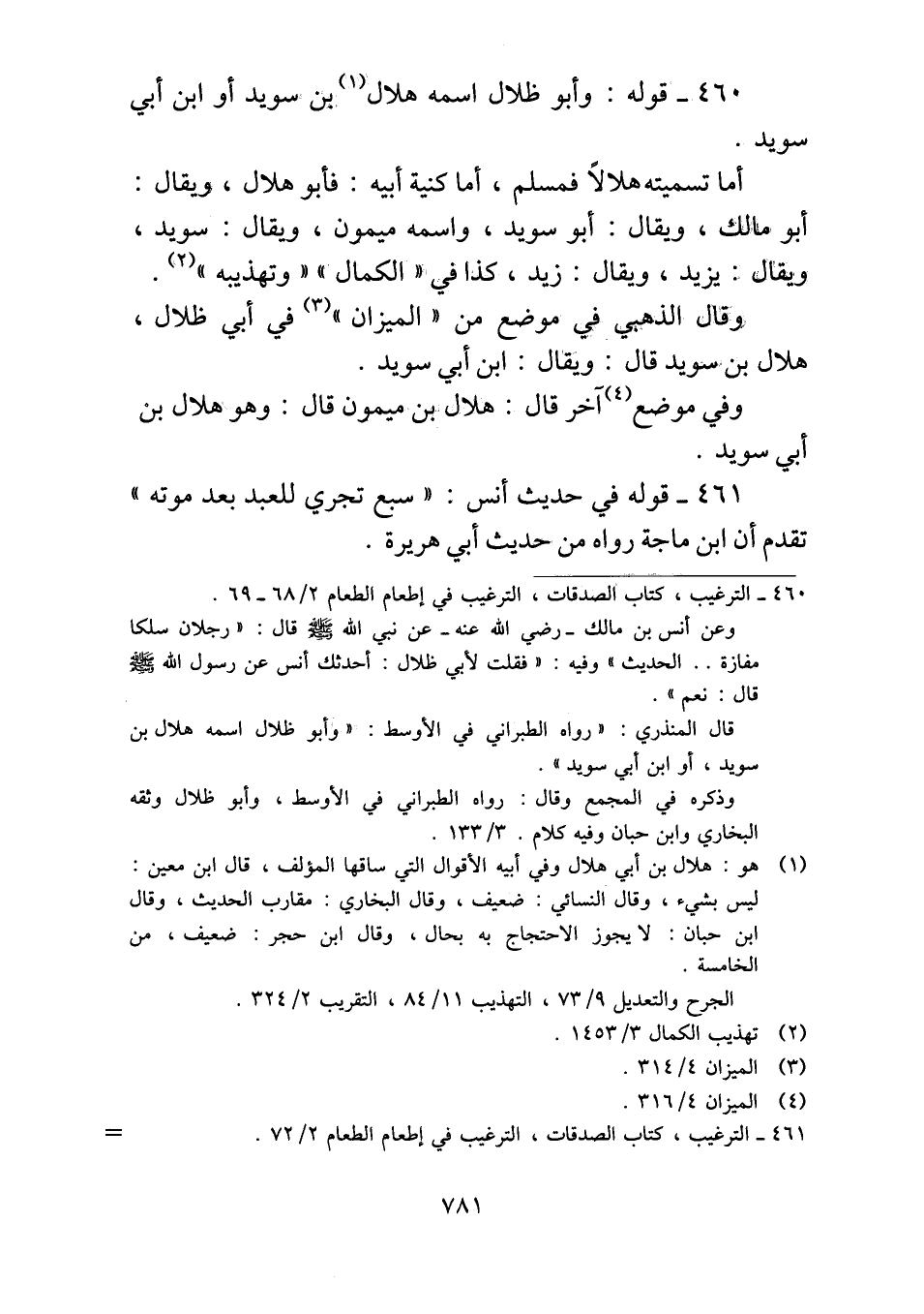 ٤٦٠ - قوله: وأبو ظلال اسمه هلال بن سويد أو ابن أبي سويد.