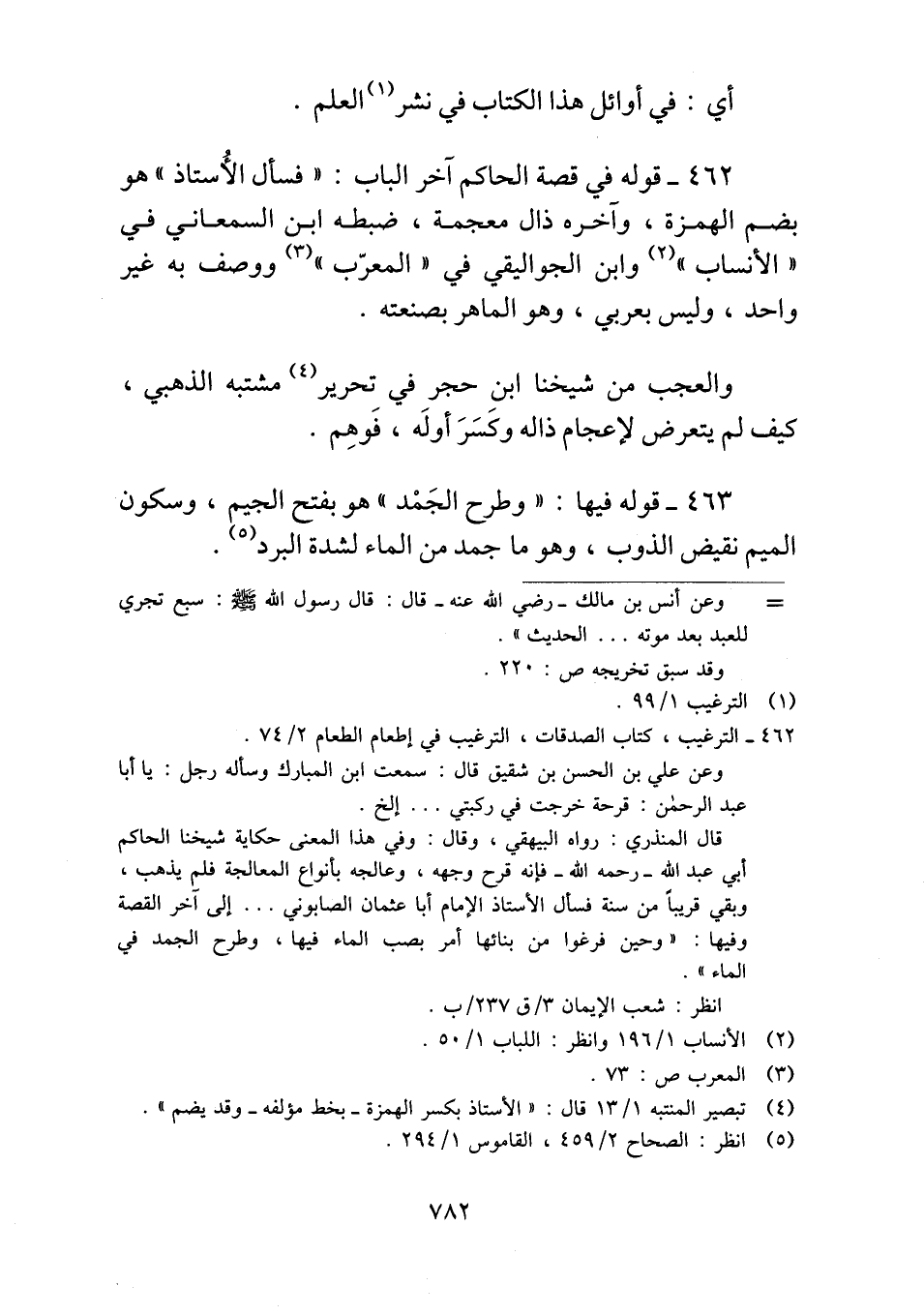 ٤٦٢ - قوله في قصة الحاكم آخر الباب: "فسأل الأُستاذ" هو بضم الهمزة، وآخره ذال معجمة، ضبطه ابن السمعاني في "الأنساب" وابن الجواليقي في "المعرّب" ووصف به غير واحد، وليس بعربي، وهو الماهر بصنعته.