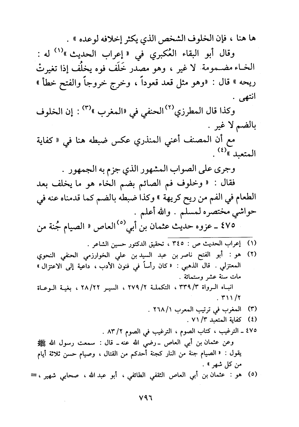 ٤٧٥ - عزوه حديث عثمان بن أبي العاص "الصيام جُنة من