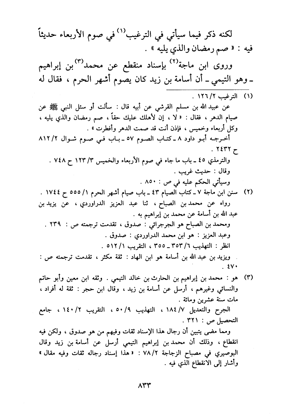 وروى ابن ماجة بإسناد منقطع عن محمد بن إبراهيم -وهو التيمي- أن أسامة بن زيد كان يصوم أشهر الحرم، فقال له