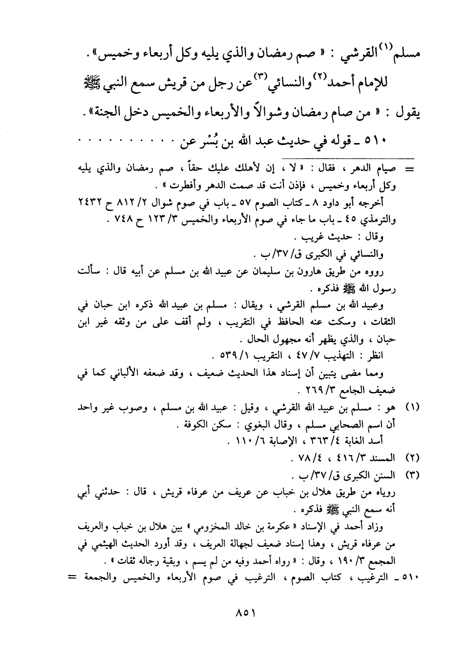 ٥١٠ - قوله في حديث عبد الله بن بُسْر عن