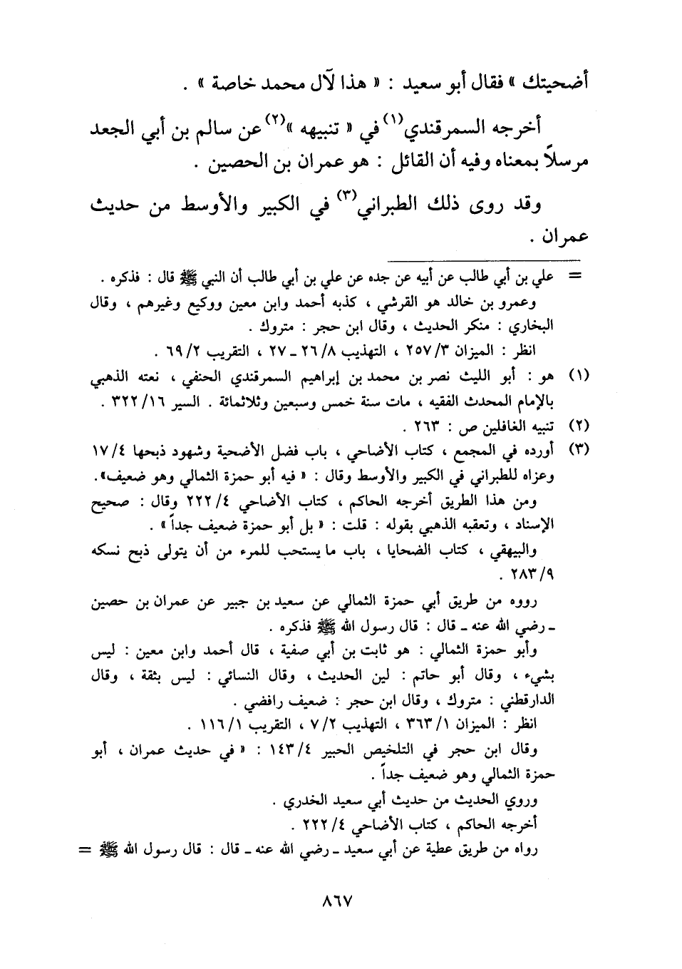 أضحيتك" فقال أبو سعيد: "هذا لآل محمد خاصة".