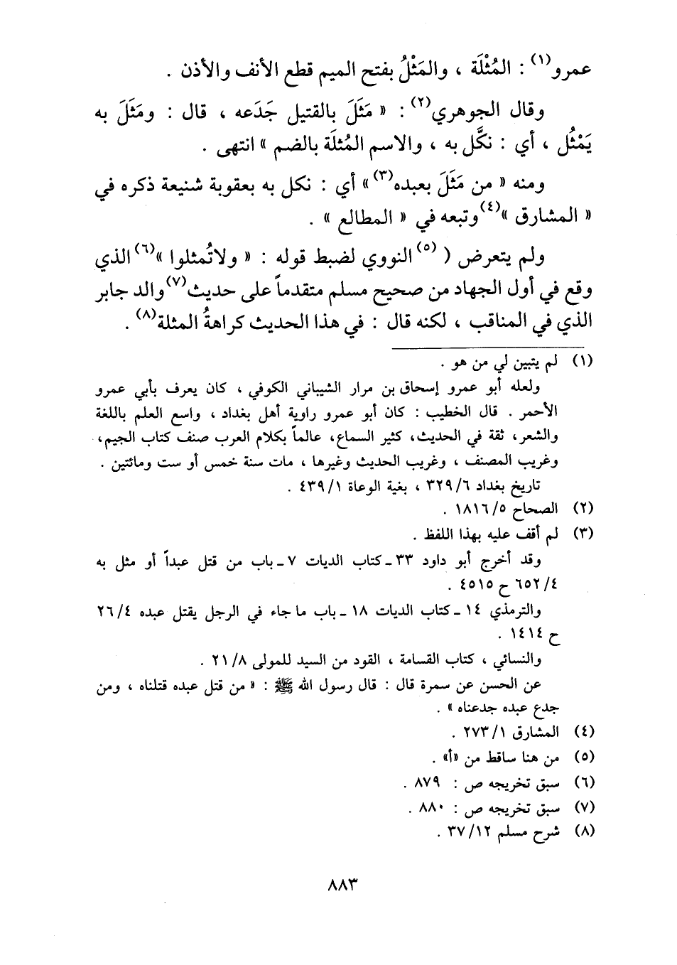 ولم يتعرض النووي لضبط قوله: "ولا تُمثلوا" الذي وقع في أول الجهاد من صحيح مسلم متقدماً على حديث والد جابر الذي في المناقب، لكنه قال: في هذا الحديث كراهةُ المثلة.