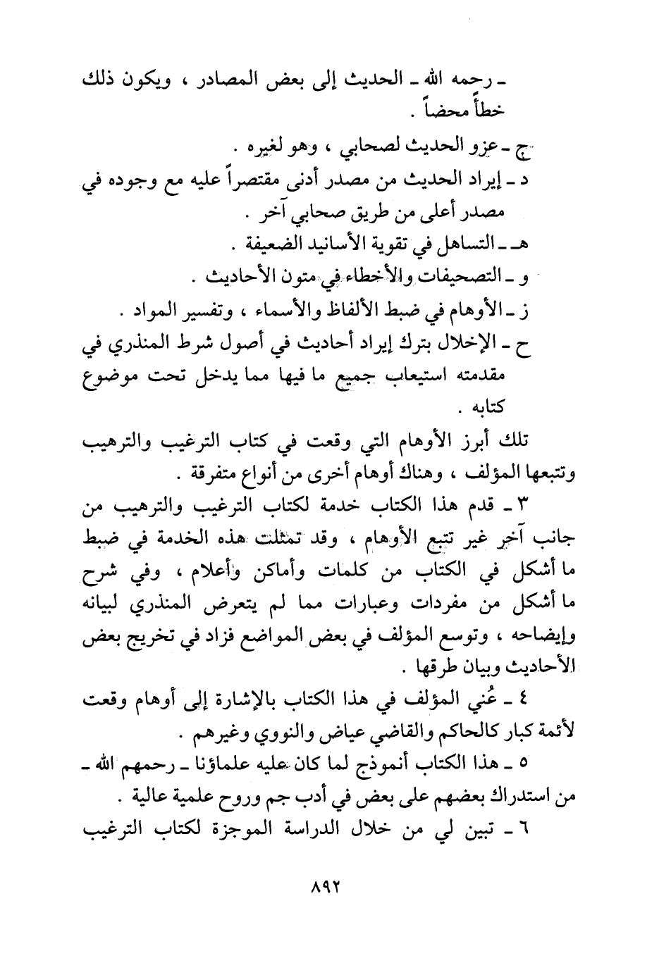 ٦ - تبين لي من خلال الدراسة الموجزة لكتاب الترغيب