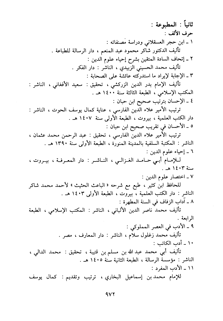ترتيب الأمير علاء الدين الفارسي، تحقيق: عبد الرحمن محمد عثمان، الناشر: المكتبة السلفية بالمدينة المنورة، الطبعة الأولى سنة ١٣٩٠ هـ.
