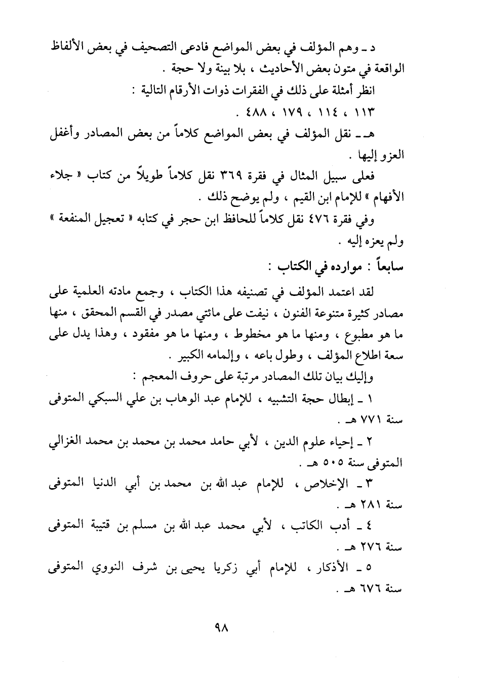 هـ- نقل المؤلف في بعض المواضع كلاماً من بعض المصادر وأغفل العزو إليها.
