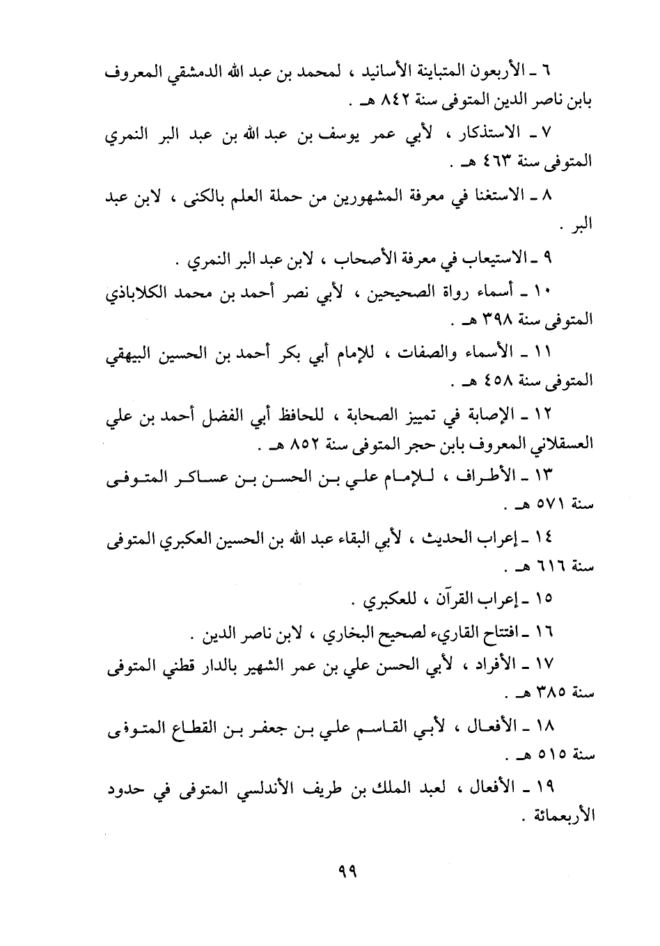 ٩ - الاستيعاب في معرفة الأصحاب، لابن عبد البر النمري.