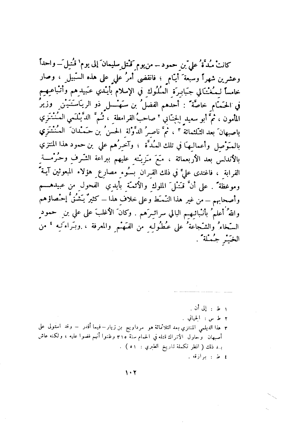 كانت مدة علي بن حمود - من يوم قتل سليمان إلى يوم قتل - واحدا وعشرين شهرا وسبعة أيام؛ فانقضى أمر علي على هذه السبيل، وصار خامسا لمغتالي جبابرة الملوك في الإسلام بأيدي عبيدهم وأتباعهم في الحمام خاصة: أحدهم الفضل بن سهل ذو الرياستين وزير المأمون، ثم أبو سعيد الجنابي صاحب القرامطة، ثم الديلمي المنتزي باصبهان بعد الثلثمائة، ثم ناصر الدولة الحسن بن حمدان المنتزي بالأندلس بعد الأربعمائة، مع مزيته عليهم ببراعة الشرف وحرمة القرابة، فاغتدى علي في ذلك القران بسوء مصارع هؤلاء المبعوثين آية وموعظة. على أن قتل الملوك والأثمة بأيدي الفحول من عبيدهم وأصحابهم - من غير هذا النمط وعلى خلاف هذا - كثير يشق إحصاؤهم والله بأنبائهم البالي سرائرهم. وكان الأغلب على علي بن حمود السخاء والشجاعة على عطوله من الفهم والمعرفة، وبراءته من الخير جملة.